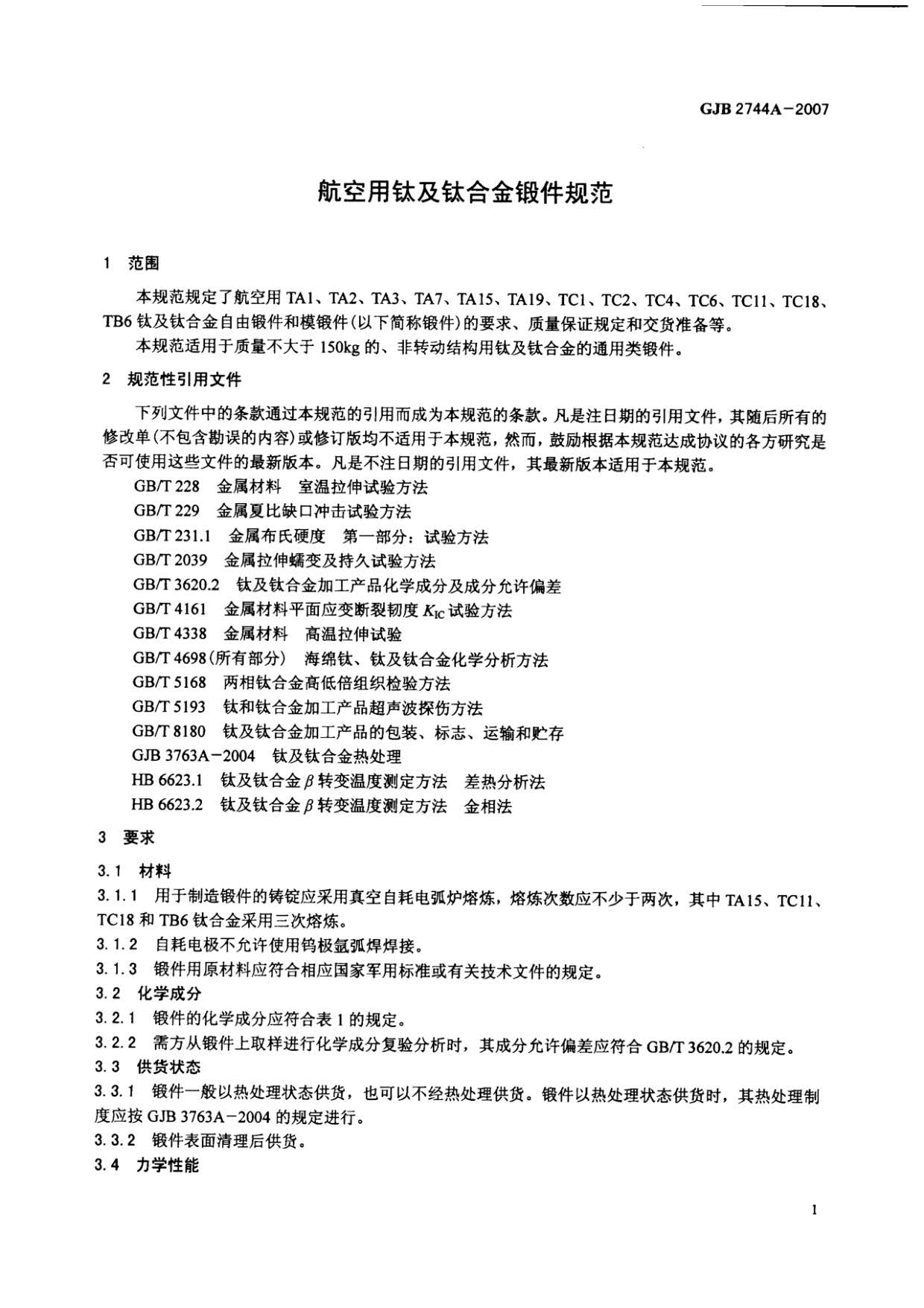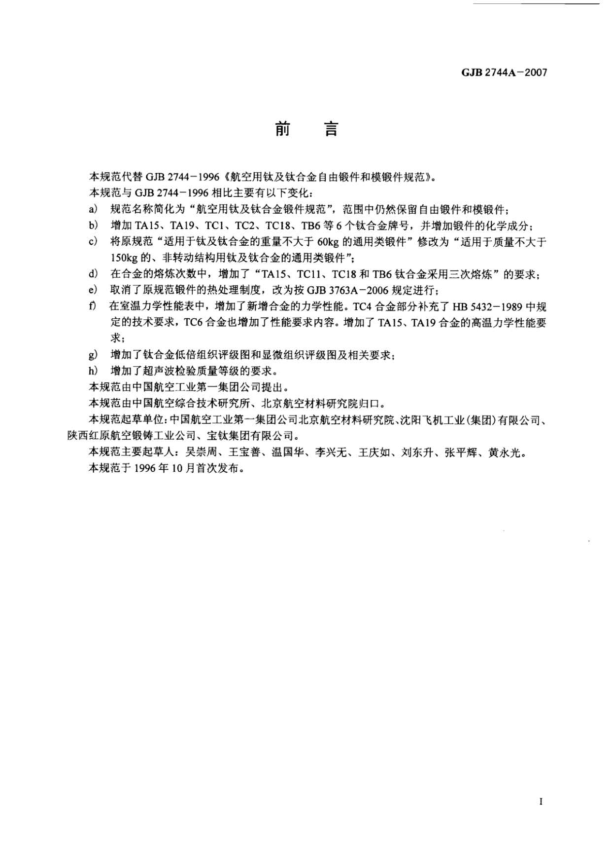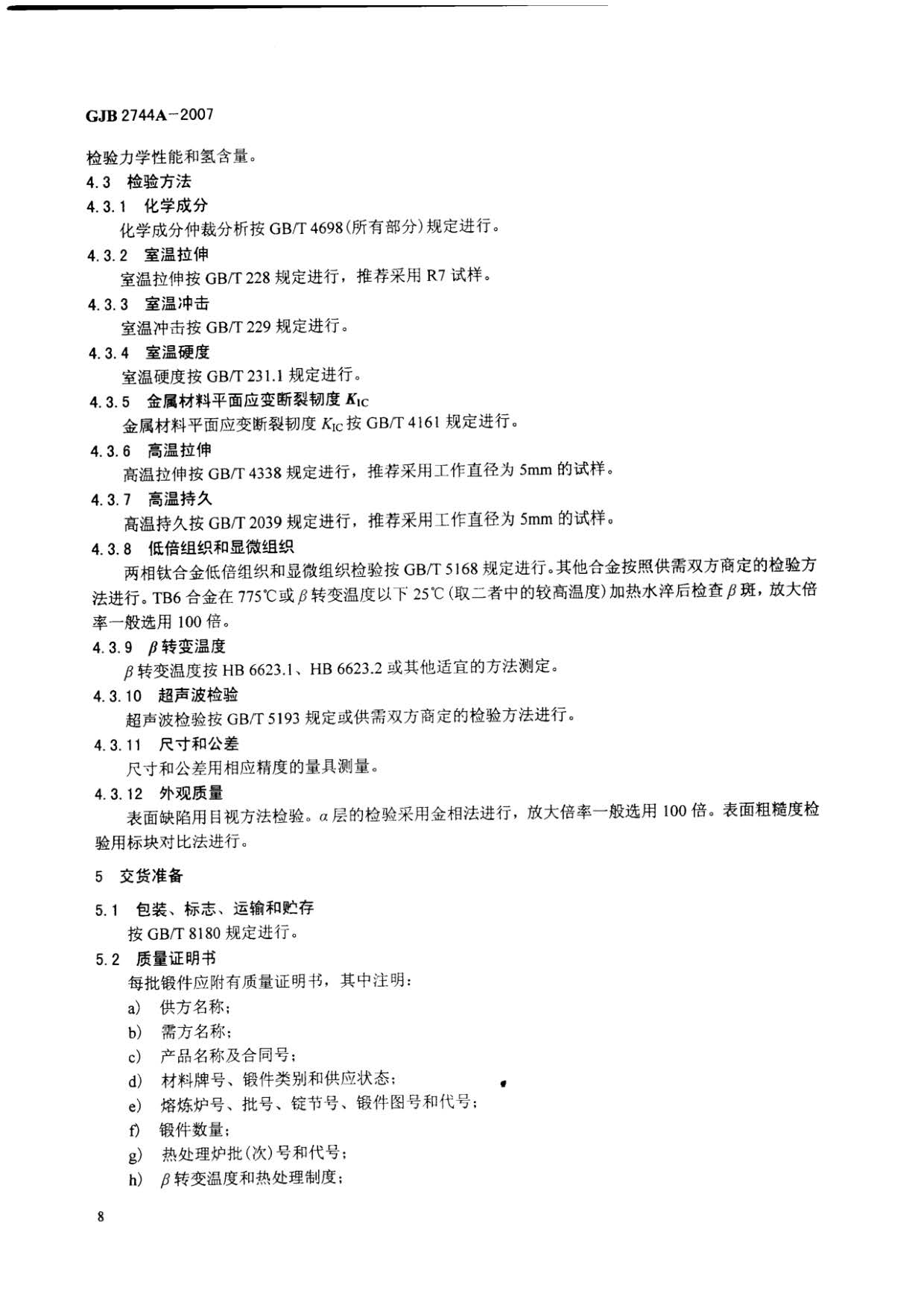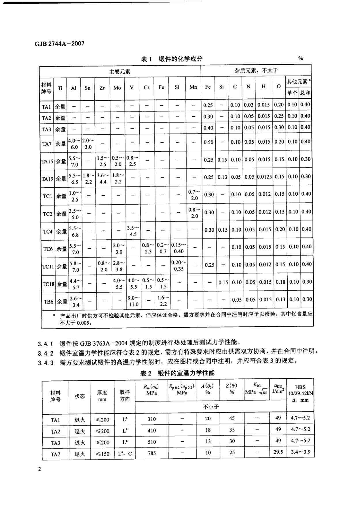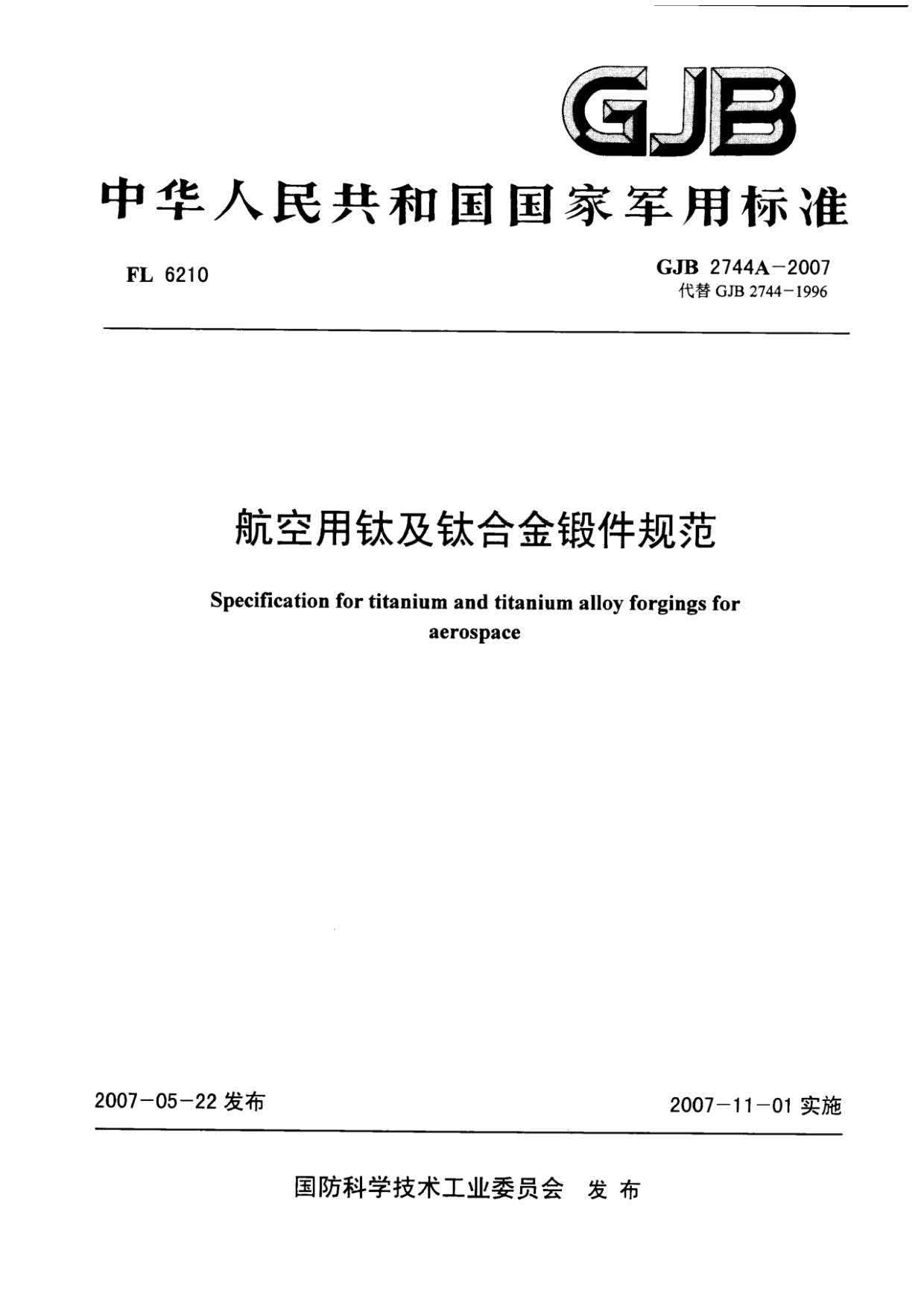 國軍標航空用鈦及鈦合金鍛件規(guī)范 GJB 2744A-2007